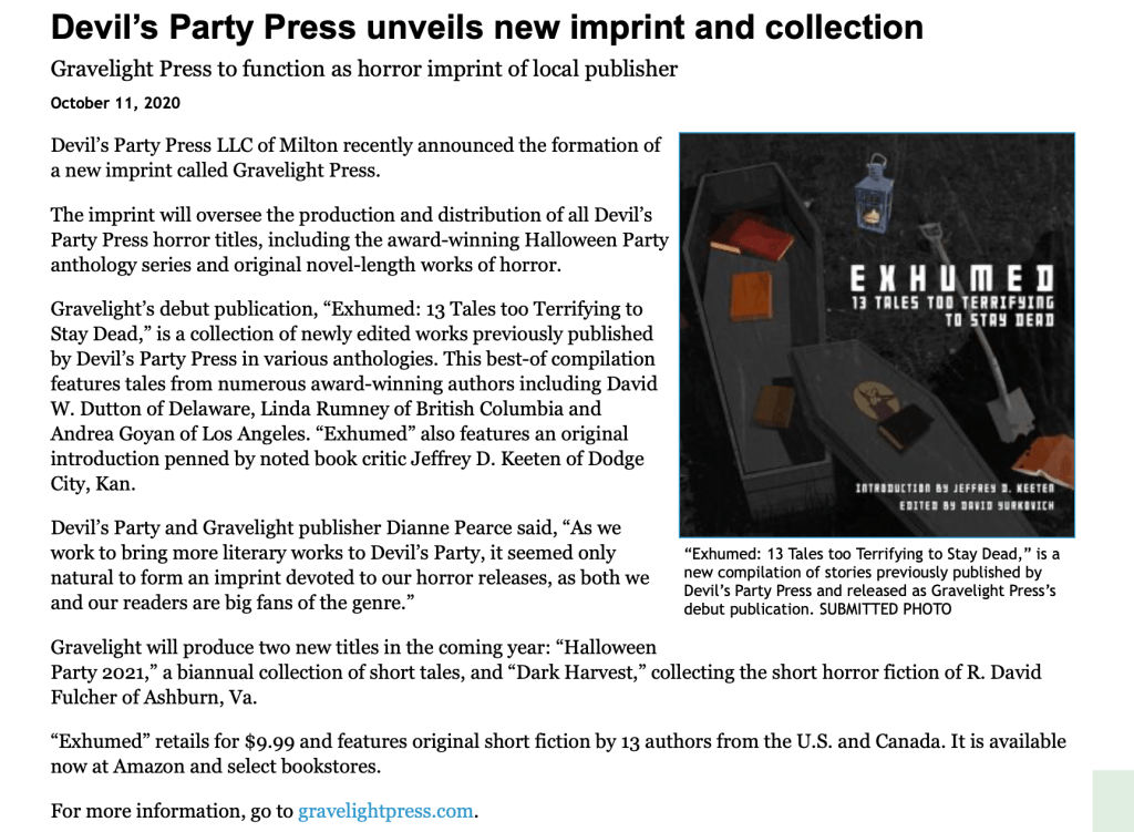 Write to Dave and he will send you a press release ABOUT YOU that you can send to your local press.